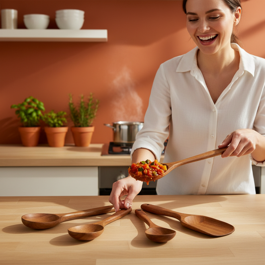 Teak Natural Wood Tableware Spoon Ladle Turner Rice Colander Soup Skimmer Cooking Tool Set